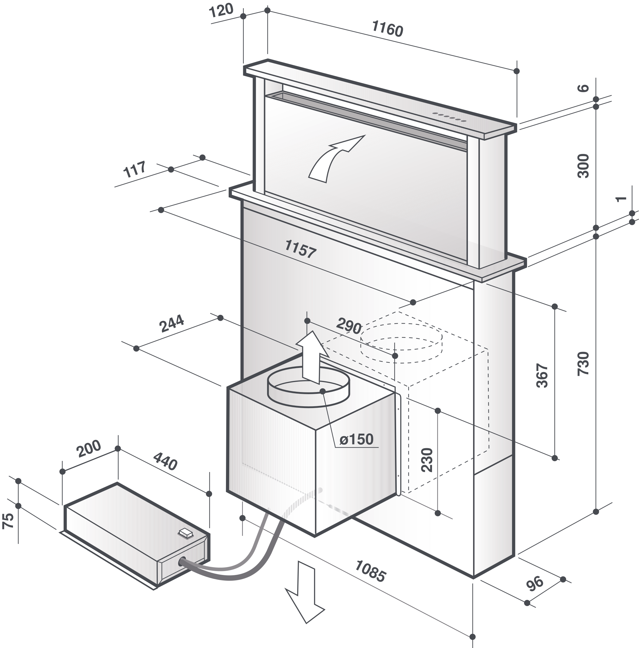 שליפה ובישול מושלמים. קולט אדים נשלף בגודל 120 ס"מ ניתן להתאמה עם כלל הכיריים (גם דומינו) מן הקולקציה שלנו. המנוע מוסתר מתחת לדלפק במהלך ההתקנה כך שלא נשאר כלום מלבד סימון זכוכית שחורה על המשטח לתצוגה. עיצוב היחידה נעשה כך שלא ישתלט על חלל המטבח, גם מבחינה חיצונית וגם מבחינת רמות הרעש הנמוכות בזמן הפעולה.