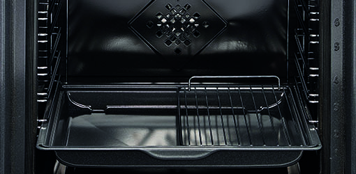 מערכת מסילות המאפשרת לך הוצאה חלקה וקלה של מגשים ומנות אל ומתוך התנור.